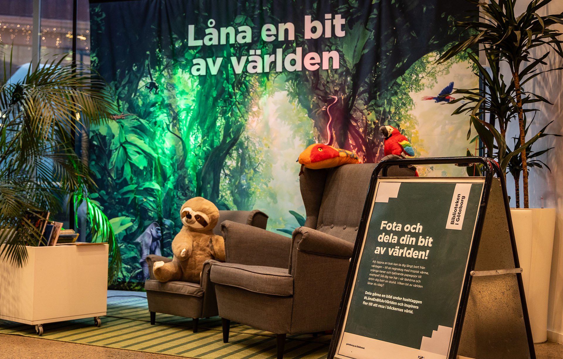 I kampanjen ”Låna en bit av världen” vill Biblioteken i Göteborg uppmärksamma att du genom böcker kan resa till andra platser – både fiktiva och verkliga, så väl historiska som nutida. Dessutom alltid gratis. Det enda du behöver är ett lånekort.
